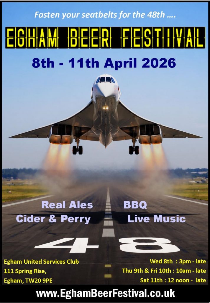 The now famous Egham Beer Festivals are proudly hosted at our multi CAMRA-award winning United Services Club. We are a private members club originally formed in October 1920 (8 months earlier than the Royal British Legion!) and in this current building since 1965. We welcome CIU & CAMRA members and also new membership applications from the local community. Although the festivals are completely self funding we do appreciate the help and support of our many volunteers who assist with the set up & takedown along with shifts on the door, BBQ and outside bar.