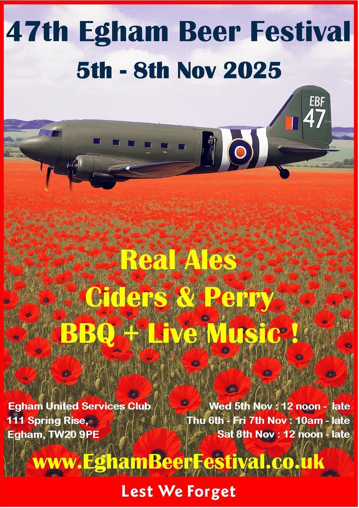 The now famous Egham Beer Festivals are proudly hosted at our multi CAMRA-award winning United Services Club. We are a private members club originally formed in October 1920 (8 months earlier than the Royal British Legion!) and in this current building since 1965. We welcome CIU & CAMRA members and also new membership applications from the local community. Although the festivals are completely self funding we do appreciate the help and support of our many volunteers who assist with the set up & takedown along with shifts on the door, BBQ and outside bar.